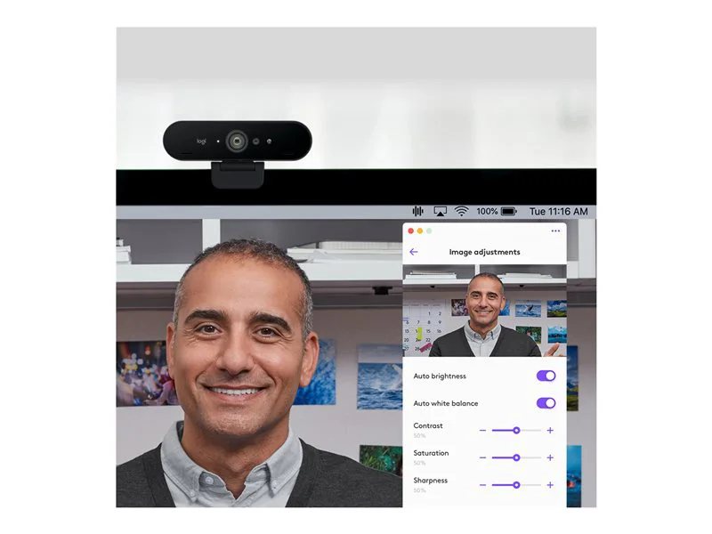 With 4K Ultra HD quality, BRIO is Logitech's best ever webcam, delivering the highest quality desktop video experience available. Harsh lighting conditions? Logitech's RightLight 3 with High Dynamic Range (HDR) helps you look your best in any lighting environment, from low light to direct sunlight. Take control of your visual environment and deploy video in cluttered surroundings with 5x digital zoom and multiple field-of-view options – 65, 78, and 90 degrees. Be your own producer. The high-end camera provides razor-sharp optics, autofocus and BRIO supports multiple HD resolutions, including 4K, 1080p and 720p to optimally support your computer/network environment. BRIO is also packed with extras, including support for infrared-based facial recognition to strengthen login security, external privacy shutter, multiple connection types (2.0 Type A and 3.0 Type A and C connections), works with Microsoft Cortana voice control, and offers multiple mounting options with the removable clip or embedded tripod thread. Step up to amazing face-to-face collaboration with Logitech BRIO, an unparalleled webcam experience.