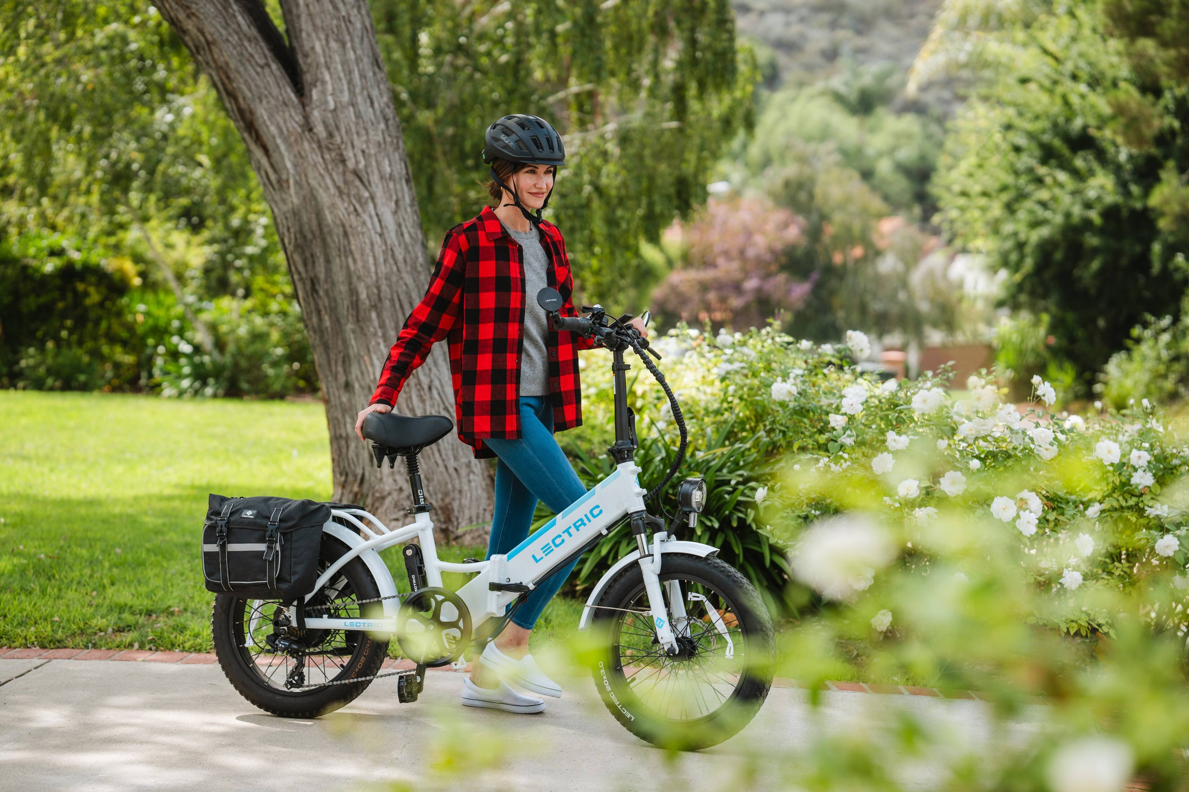 Lectric eBikes - XPedition 2.0 Dual-Battery eBike: 120mi. Range/28mph Speed + Cushions, Running Boards, Headlight, Seat Post, & Orbitor - White
