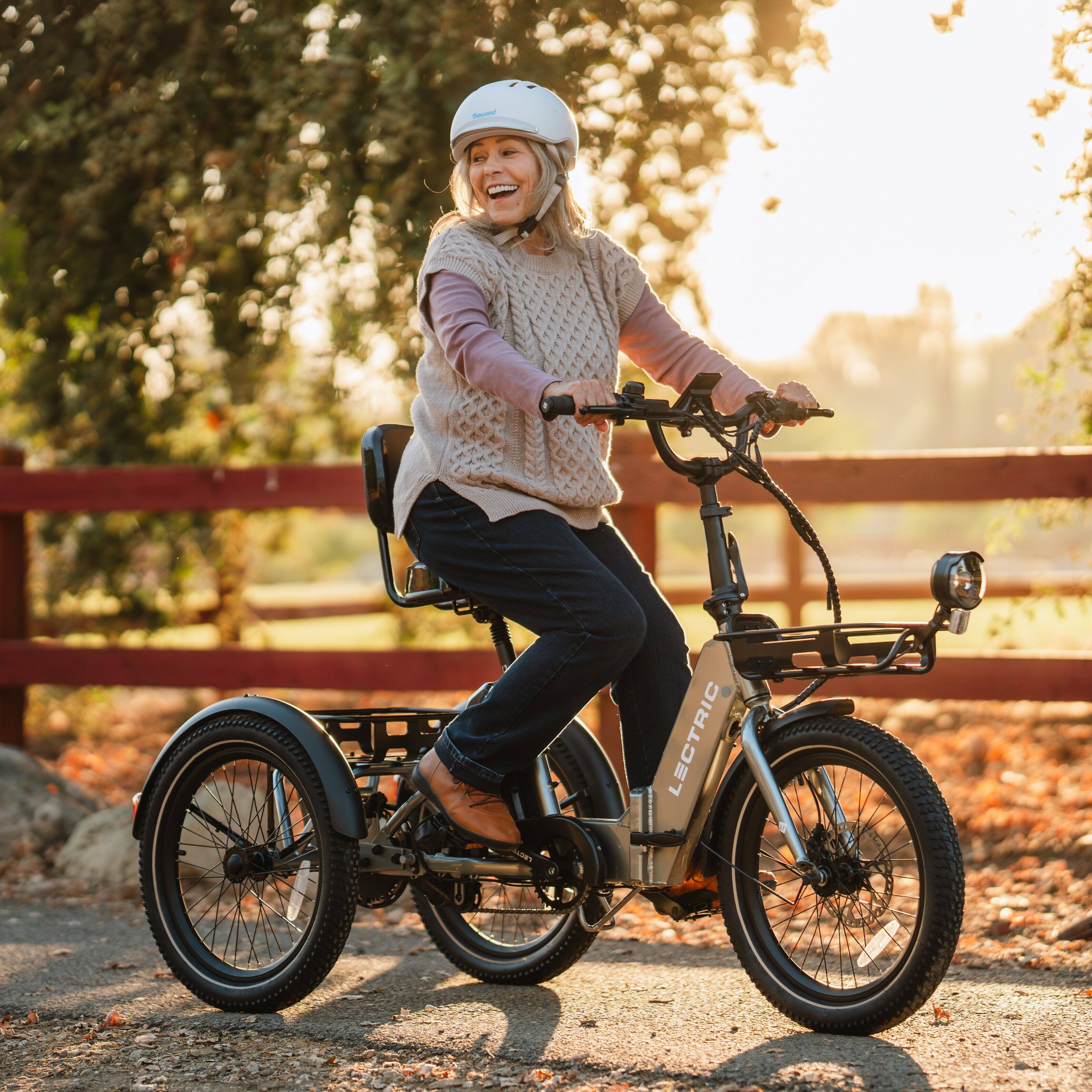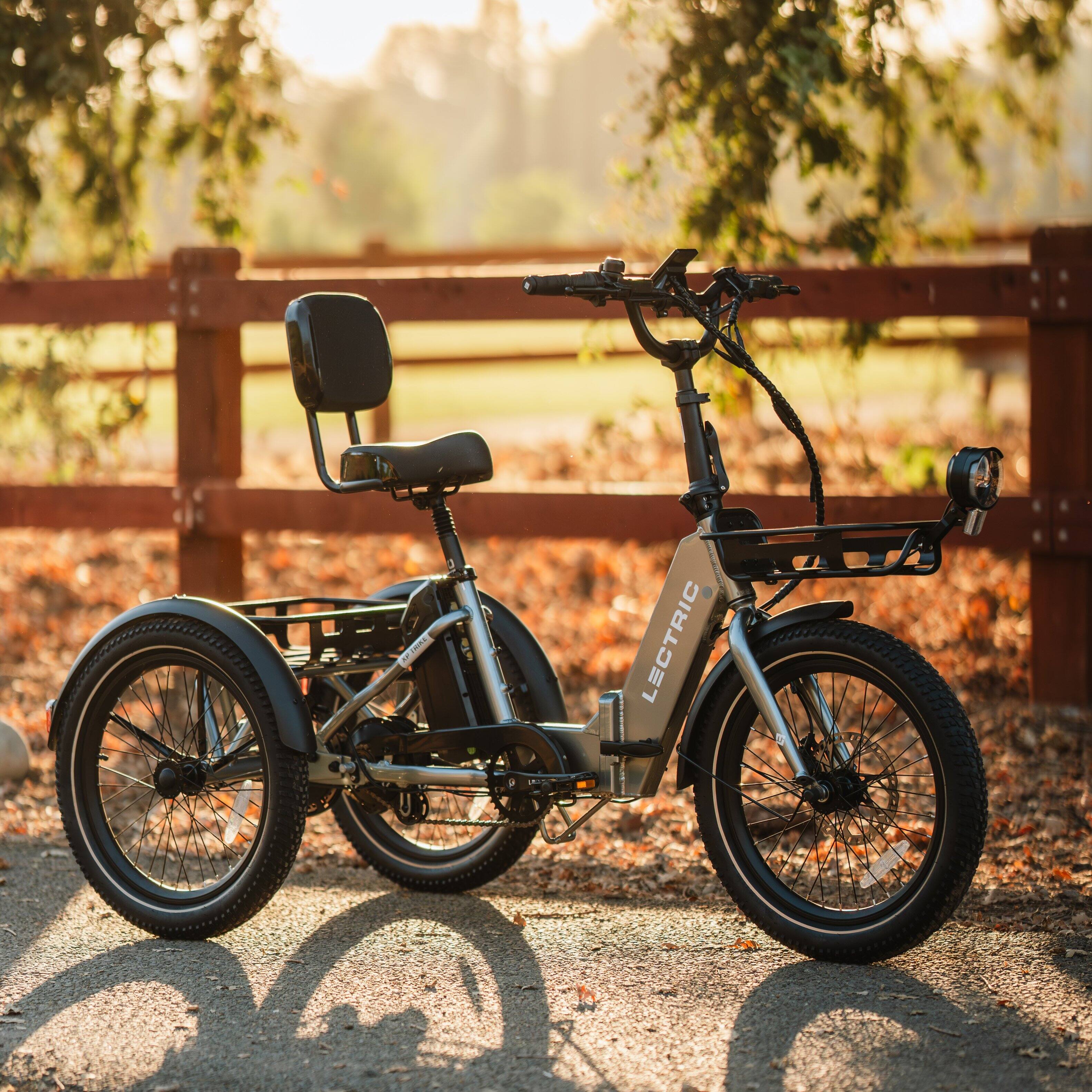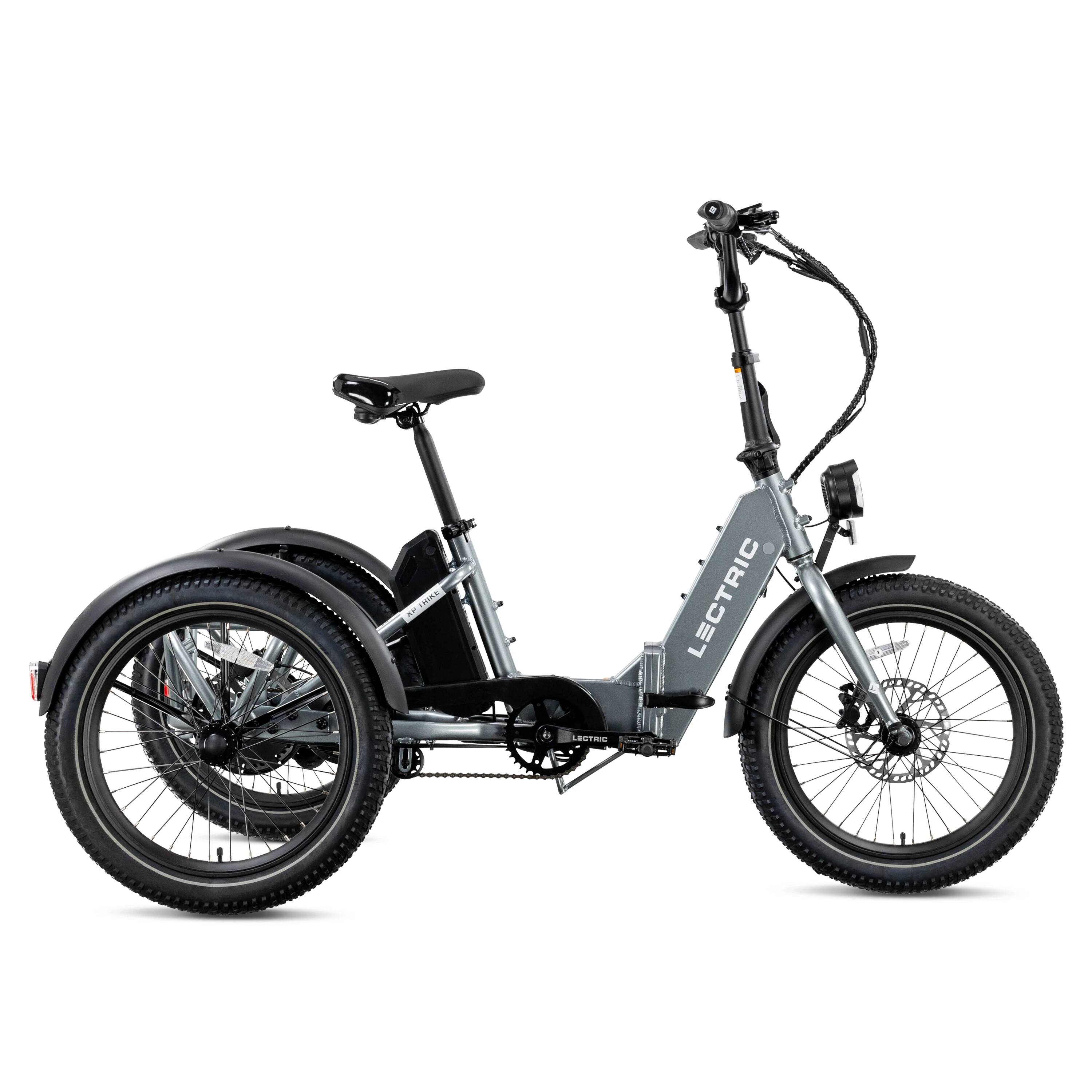Lectric eBikes - XP Trike Foldable eBike (Max 50mi. Range/14mph Speed) + Cargo Pack, Support Seat, Suspension Seat Post, Elite Headlight - Graphite
