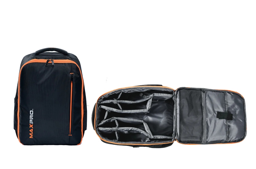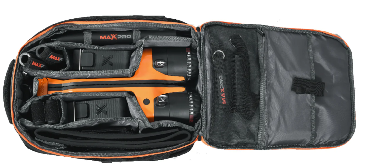 This custom travel backpack is designed to fit your MAXPRO, handles, door mounts, and the 3-piece quick connect long bar plus other accessories you may have such as the jump belt and suspension handles.