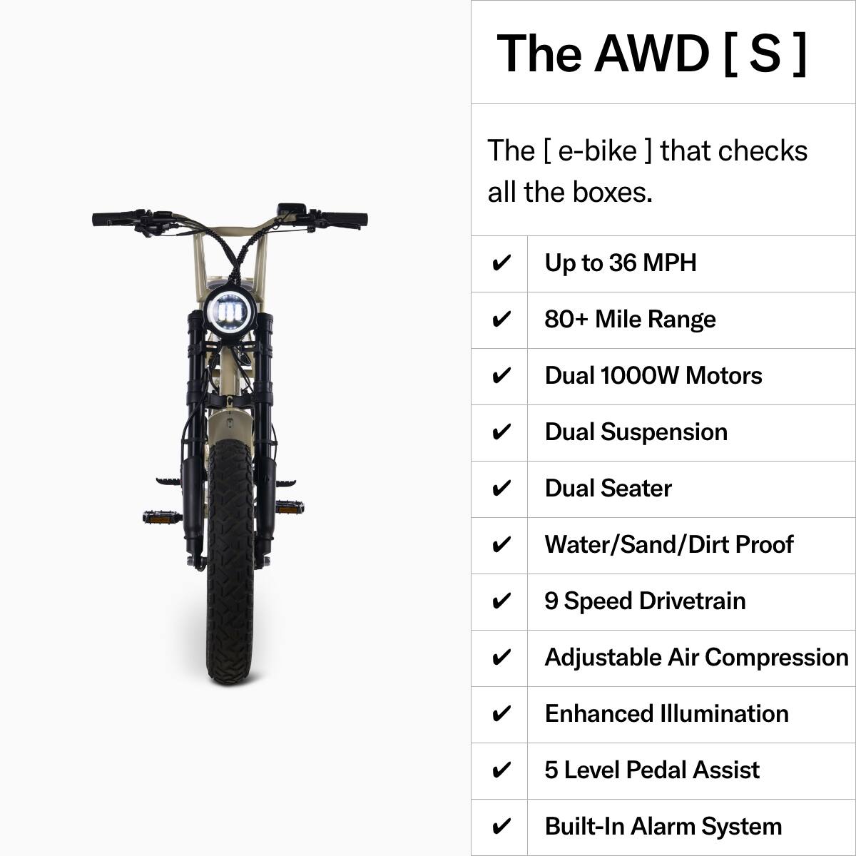 Pedal Electric - AWD [S] Dual Motor Electric Bike w/ up to 80mi Max Operating Range and 36mph Max Speed - Vintage Gloss