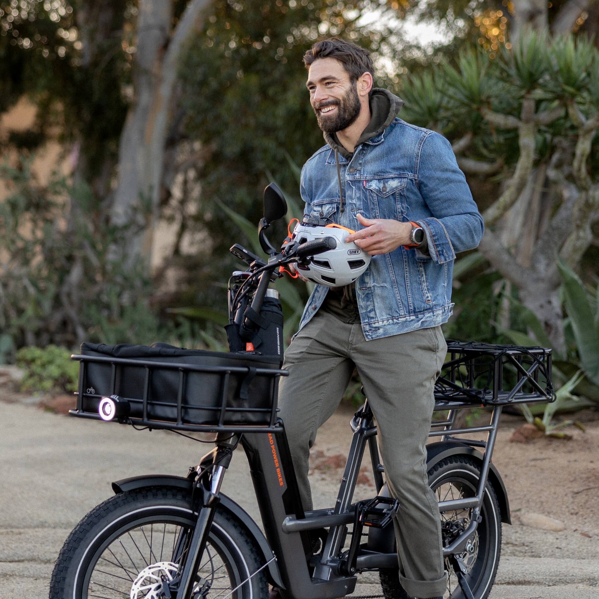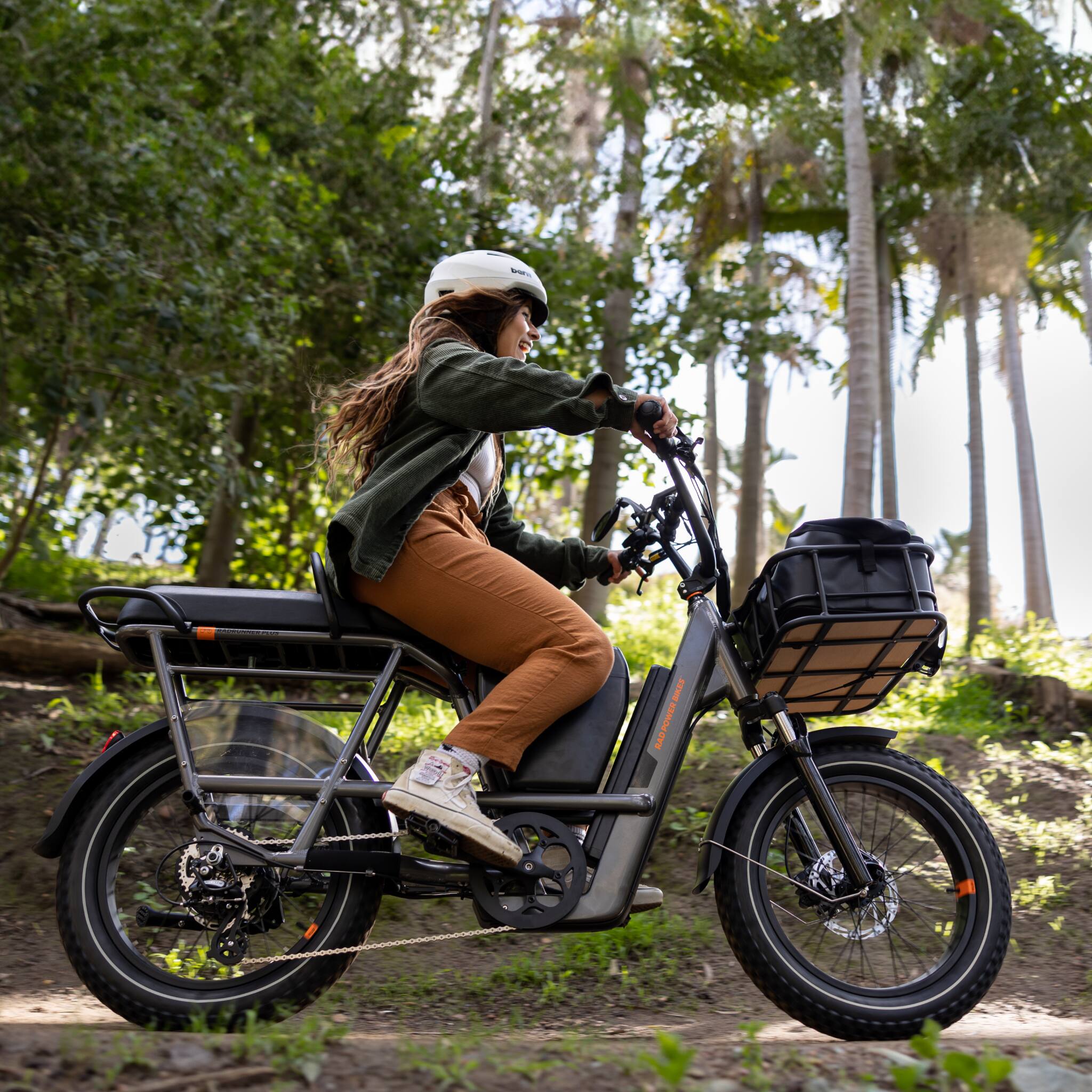 Lectric eBikes - XPedition 2.0 Dual-Battery eBike: 120mi. Range/28mph Speed + Cushions, Running Boards, Headlight, Seat Post, & Orbitor - White